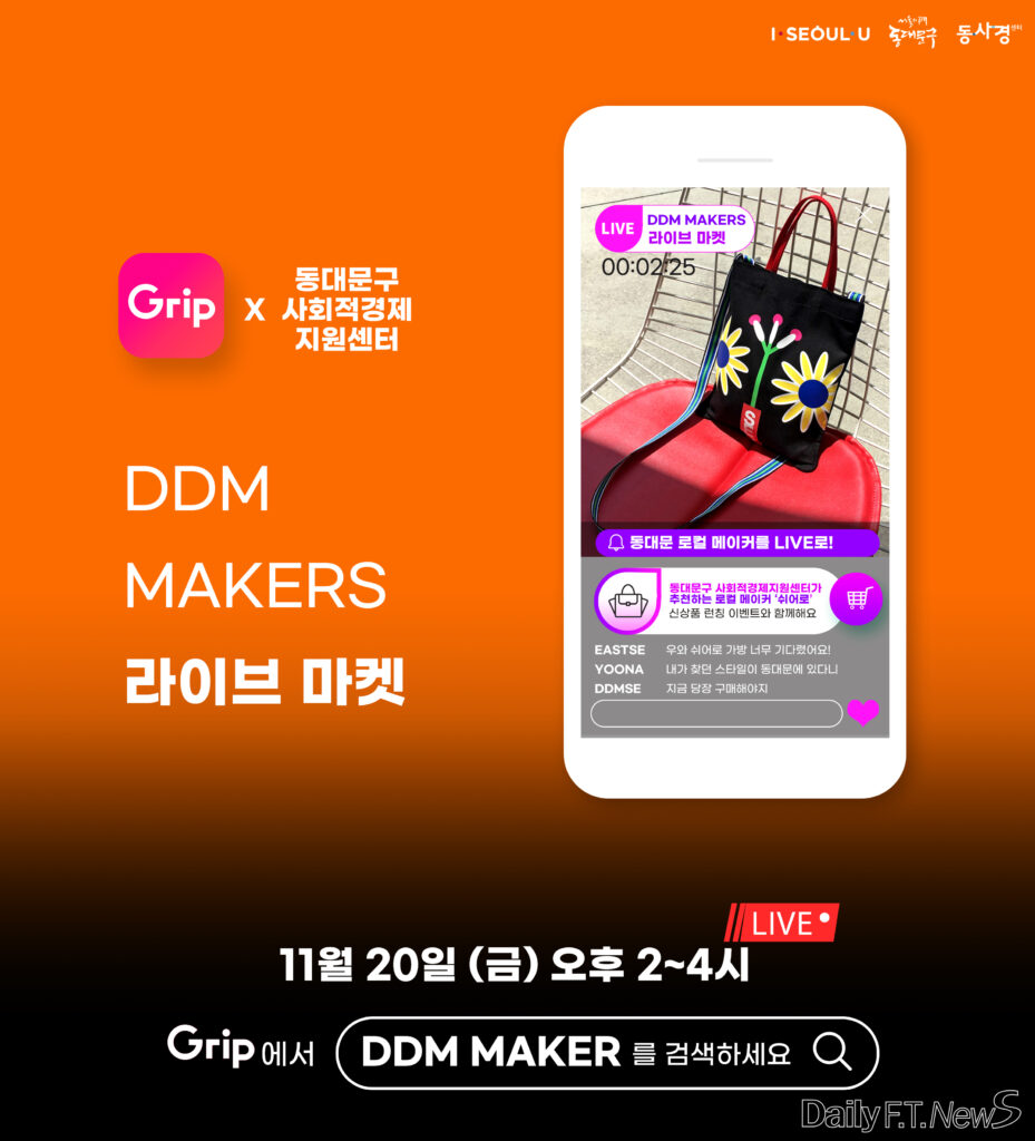 동대문구가 라이브쇼핑 채널 ‘GRIP’(그립)을 통해 동대문구 지역 창업자의 상품을 소개하는 ‘DDM MAKERS 라이브 마켓’ 방송을 실시한다고 17일 밝혔다.