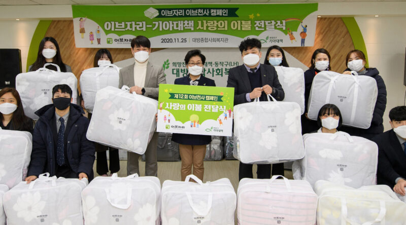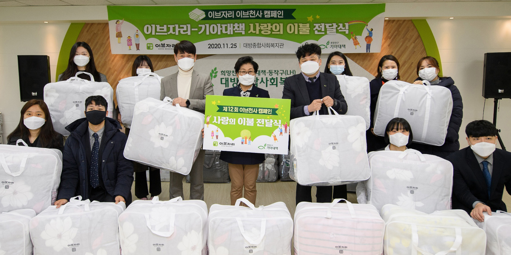사랑의 이불 전달식은 이브자리 사회공헌 프로그램 이브천사 캠페인의 하나로 2009년부터 12년째 지속 이어오고 있는 연례행사다. 올해까지 이브자리가 지역사회에 후원한 침구는 누적 2만1000여채(약 31억원 상당)에 이른다.
